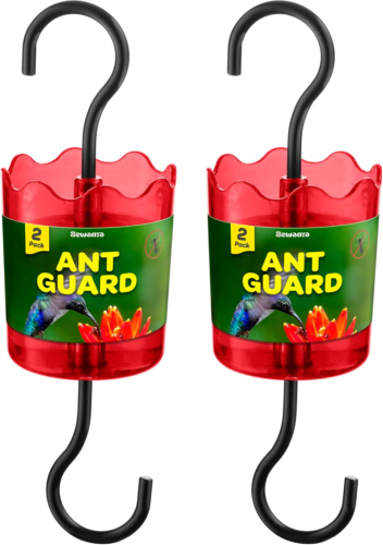 Ants are usually the easiest pest to control. The most effective tool is an ant moat—a small cup of water that hangs between the hook and the feeder.